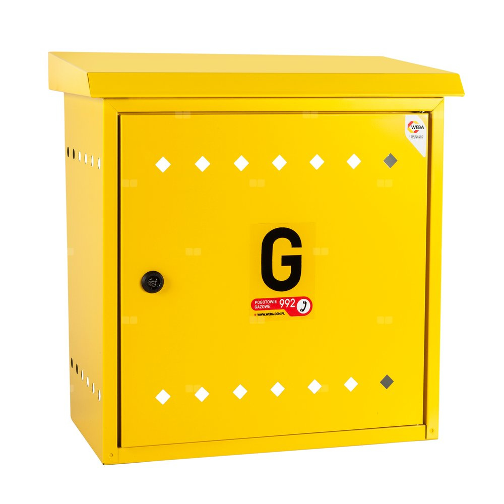 Skrzynka gazowa, 450x450x250, naścienna, metalowa, ze skośnym daszkiem - żółta, (na gazomierz G4/G6 bez reduktora)