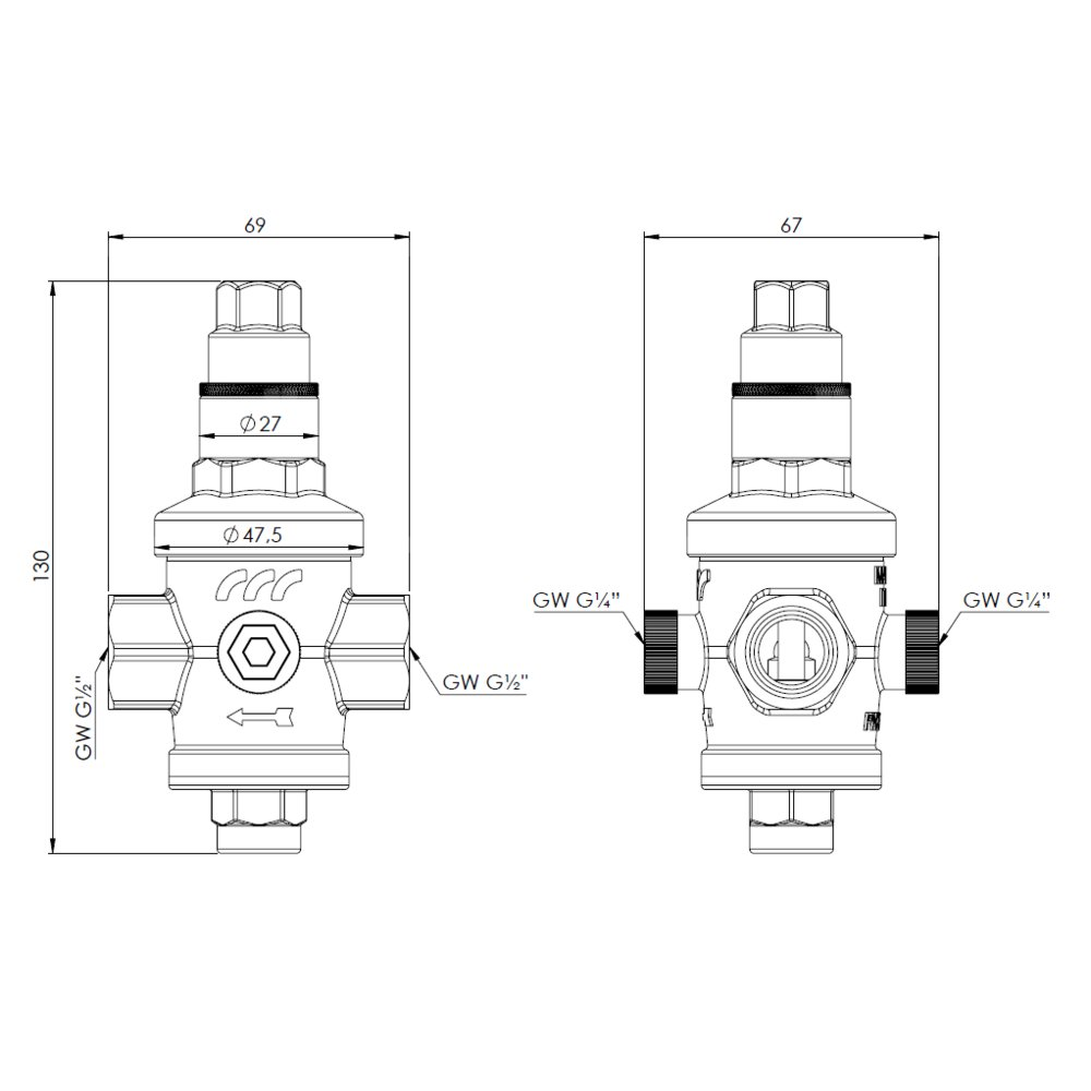 Dwa przyłącza GW1/4” na manometr.