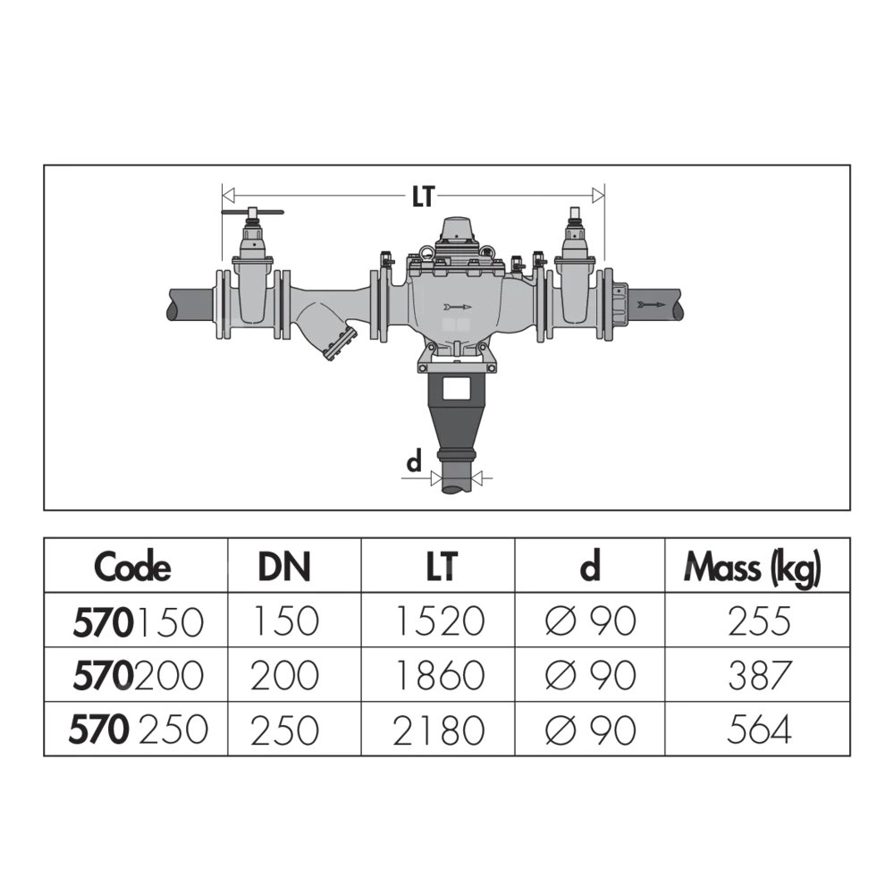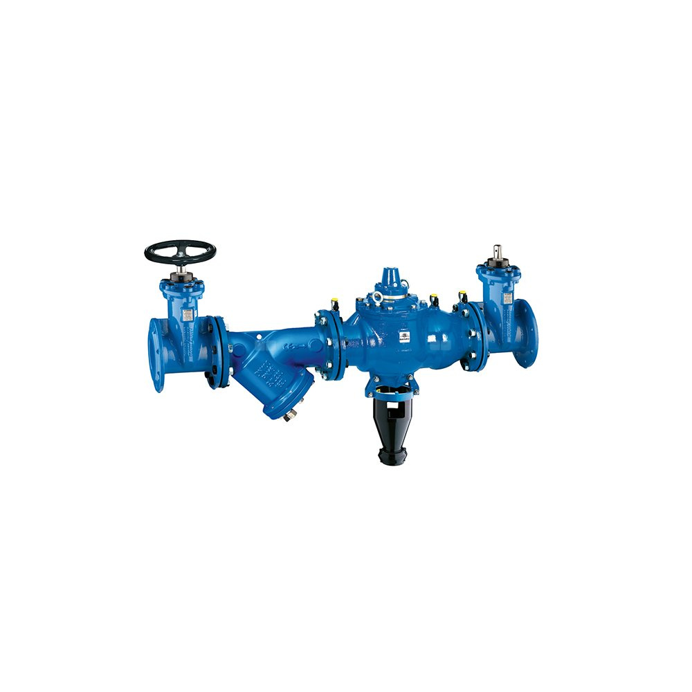 Wstępnie zmontowana grupa, przyłącza kołnierzowe PN 16. Współpraca z przeciwkołnierzem EN 1092-1. Zawiera: -izolator przepływów zwrotnych serii 575; -filtr skośny serii 579; -ręczne zawory odcinające. Przyłącze: DN 150 (EN 1092-1) PN 16. Zakres temperatury medium: 0–60 °C. PN (Ciśnienie nominalne): PN 10. DN: DN 150 (korpus).