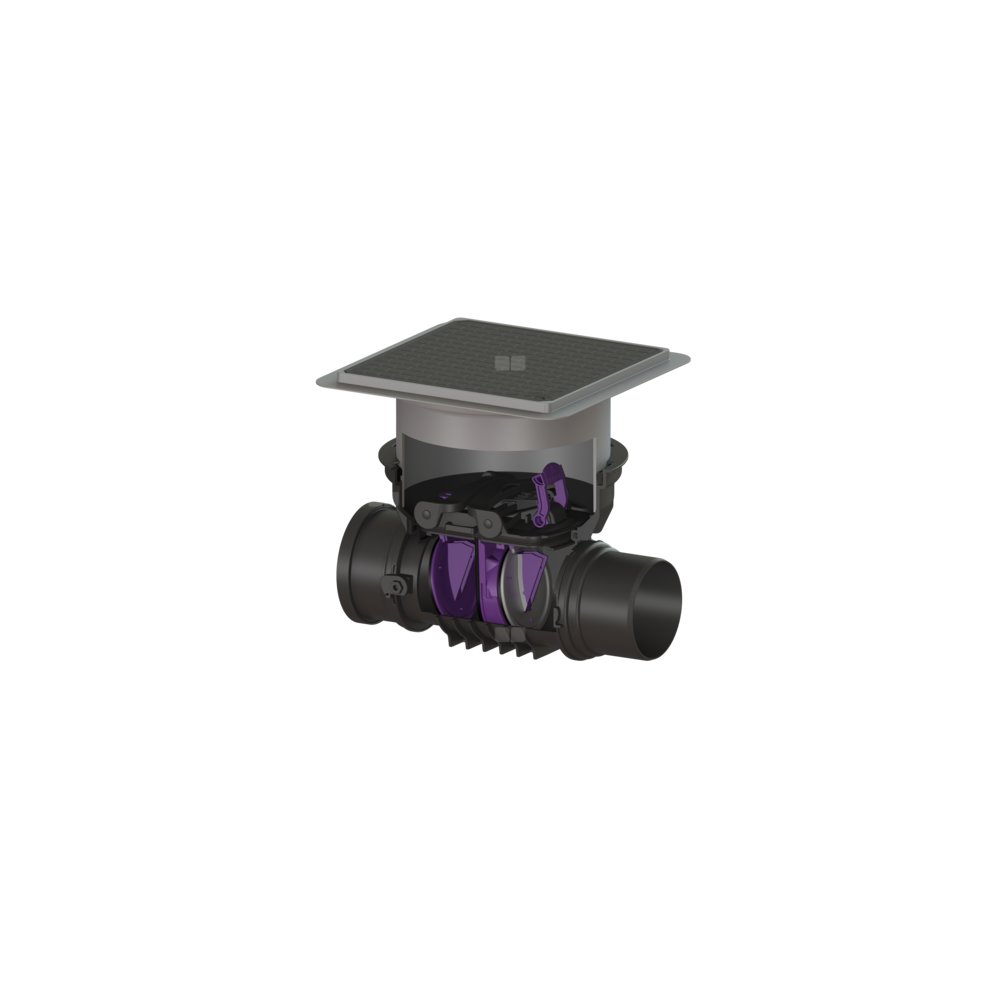 Zawór przeciwzalewowy do ścieków bez fekaliów jest wyposażony w dwie klapy mechaniczne, które samoczynnie zamykają się podczas przepływu zwrotnego. Jedna klapa zwrotna służy jednocześnie jako ręczne zamknięcie awaryjne.
