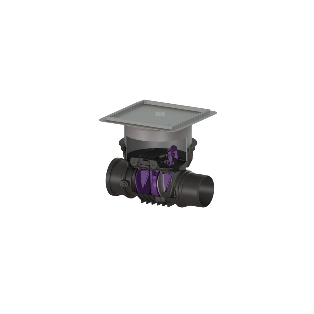 Zawór zwrotny (zasuwa burzowa) Staufix DN 150 z pokrywą pod płytki z 1 klapą z tworzywa i 1 klapą ze stali nierdzewnej