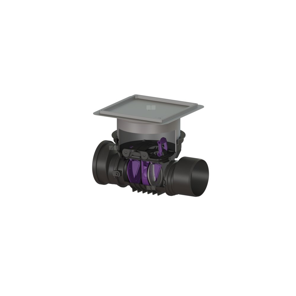 Zawór zwrotny (zasuwa burzowa) Staufix DN 200 z pokrywą pod płytki z 1 klapą z tworzywa i 1 klapą ze stali nierdzewnej