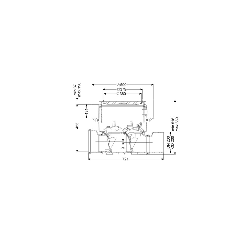 KESSEL Zawór przeciwzalewowy Staufix SWA, ścieków Ścieki bez fekaliów, wielkość nominalna (DN) 200, zabudowa w płycie podłogowej, typ pokrywy pokrywa do wklejenia płytek, 2 mechaniczne klapy zwrotne, wymiar zewnętrzny (DZ) 200 mm, zamknięcie Lock & Lift