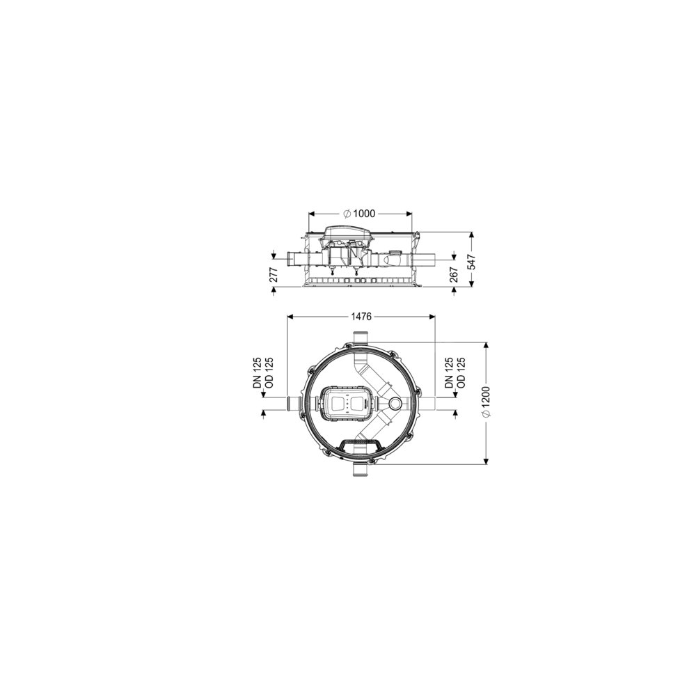 KESSEL Mod tech stud. przeciw Controlfix, ścieki fekalne, odpływ DN 125 mm, zabudowa w ziemi, liczba dopływów 3, dopływ DN 125 mm