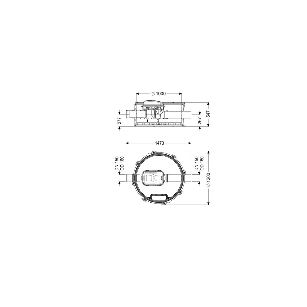 KESSEL Mod tech stud. przeciw Controlfix, ścieki fekalne, odpływ DN 150 mm, zabudowa w ziemi, liczba dopływów, dopływ DN 150 mm