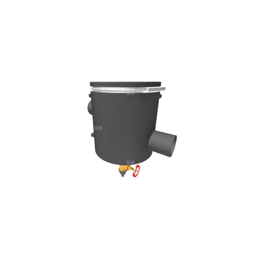 Urządzenie do pobierania próbek z separatorów, przepływowe, z odpływem poziomym, z otwór rewizyjny i lejkowatym odprowadzeniem osadu, z zaworem odcinającym 3/4". Z zamkniętą w sposób chroniący przed wydostawaniem się nieprzyjemnych zapachów pokrywą z zamknięciem szybkomocującym.
