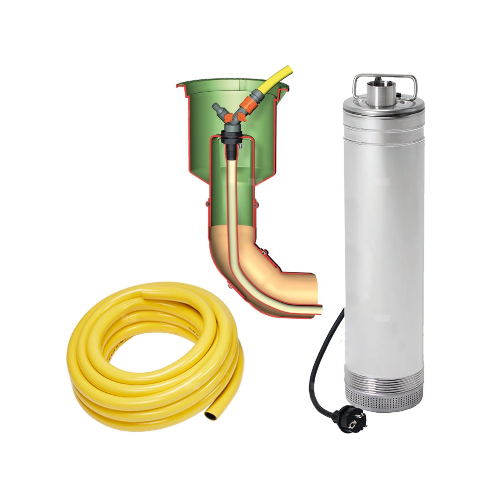 Pakiet pompy Ogród KOMFORT GARANTIA - pompa wewnętrzna zatapialna , zewnętrzny punkt poboru wody , zestaw do podlewania ogrodu , zestaw z pompą do zbiorników na deszczówkę , zestaw ogrodowy bez zbiornika