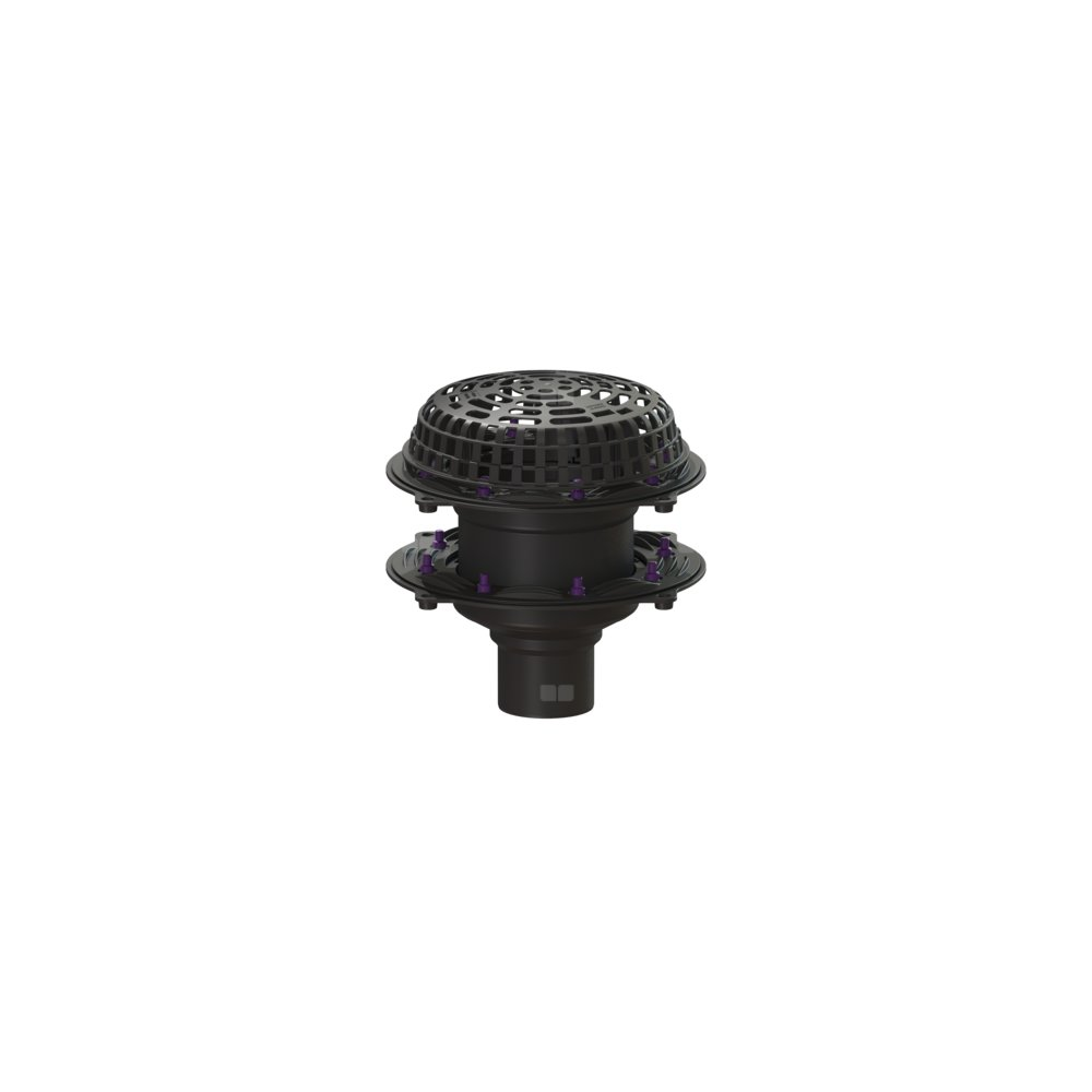 Wpust dachowy Ecoguss służy do odwodnienia punktowego i jest wyposażony w dociskowy kołnierz uszczelniający i osłonę przed żwirem. Przystosowane do recyklingu tworzywo kompozytowe Ecoguss spełnia najwyższe wymagania akustyczne, jest odporne na agresywne czynniki, odporne na temperaturę do 400°C i korozję. Dociskowy kołnierz uszczelniający z bolcami i śrubami ze stali nierdzewnej służy do dociskania lub zgrzewania taśm bitumicznych i polimerowo-bitumicznych oraz taśm uszczelniających z tworzywa sztucznego i elastomerów. Do uszczelnień wodoszczelnych mogą być stosowane tylko sprawdzone przez producenta membrany hydroizolacyjne. Wyrównanie potencjałów nie jest konieczne. Wskazówka: W przypadku dachu trapezowego o powierzchni przekraczającej 2500 metrów kwadratowych należy skonsultować się z centrum serwisowym firmy KESSEL.