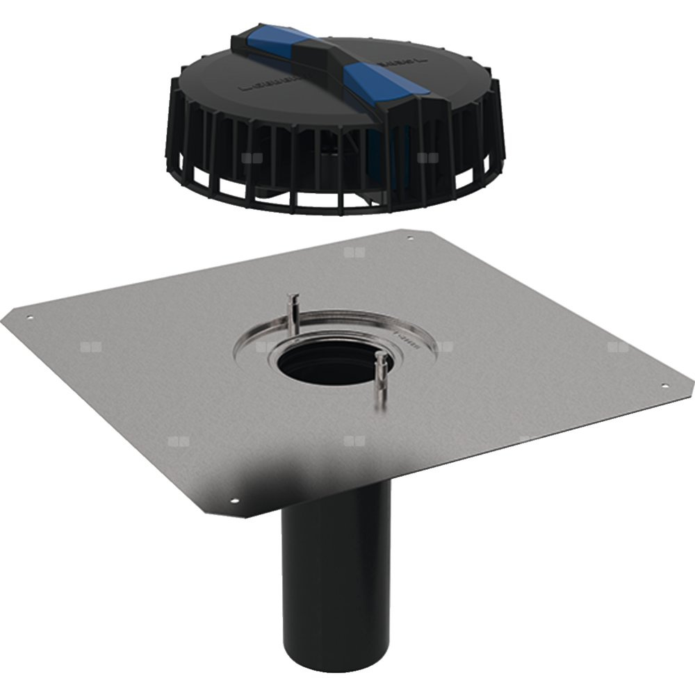 Kratka osłonowa z elementem wlotowym Element podstawowy z uniwersalnym kołnierzem przyłączeniowym ze stali CrNi 1.4301 Pokrywa skrzynki ochronnej Izolacja przeciwroszeniowa
