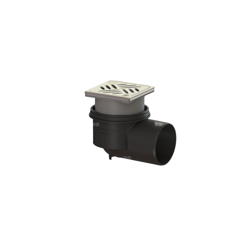 KESSEL Wpust obiektowy Ecoguss, wielkość nominalna (DN) 100, króciec boczny, typ pokrywy Kratka design, syfonem w zestawie, z regulowaną wysokością, maks. wys. posadzki 16 mm, zamknięcie Lock & Lift