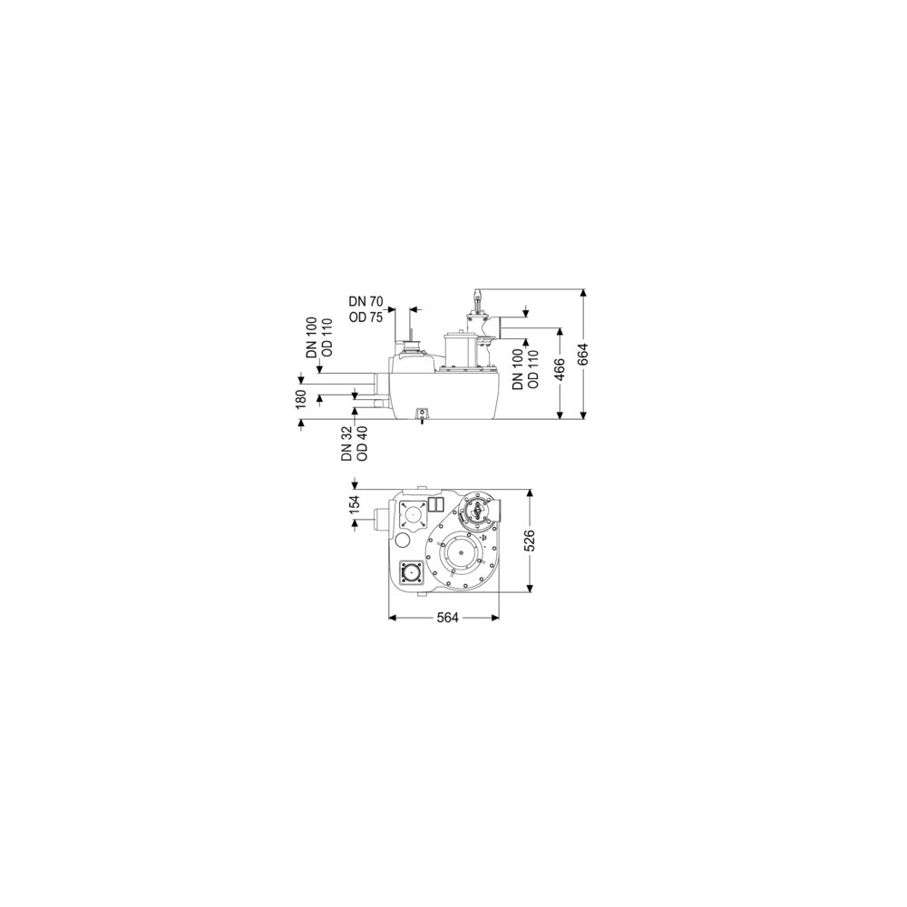 Przepompownia do ścieków zawierających fekalia i bez fekaliów jest wyposażona w pompę zatapialną oraz zawór zwrotny. Pojemnik zbiorczy wykonany z wytrzymałego tworzywa sztucznego (PE) oferuje uniwersalne możliwości podłączenia i posiada przykręcany otwór wyczystkowy.
