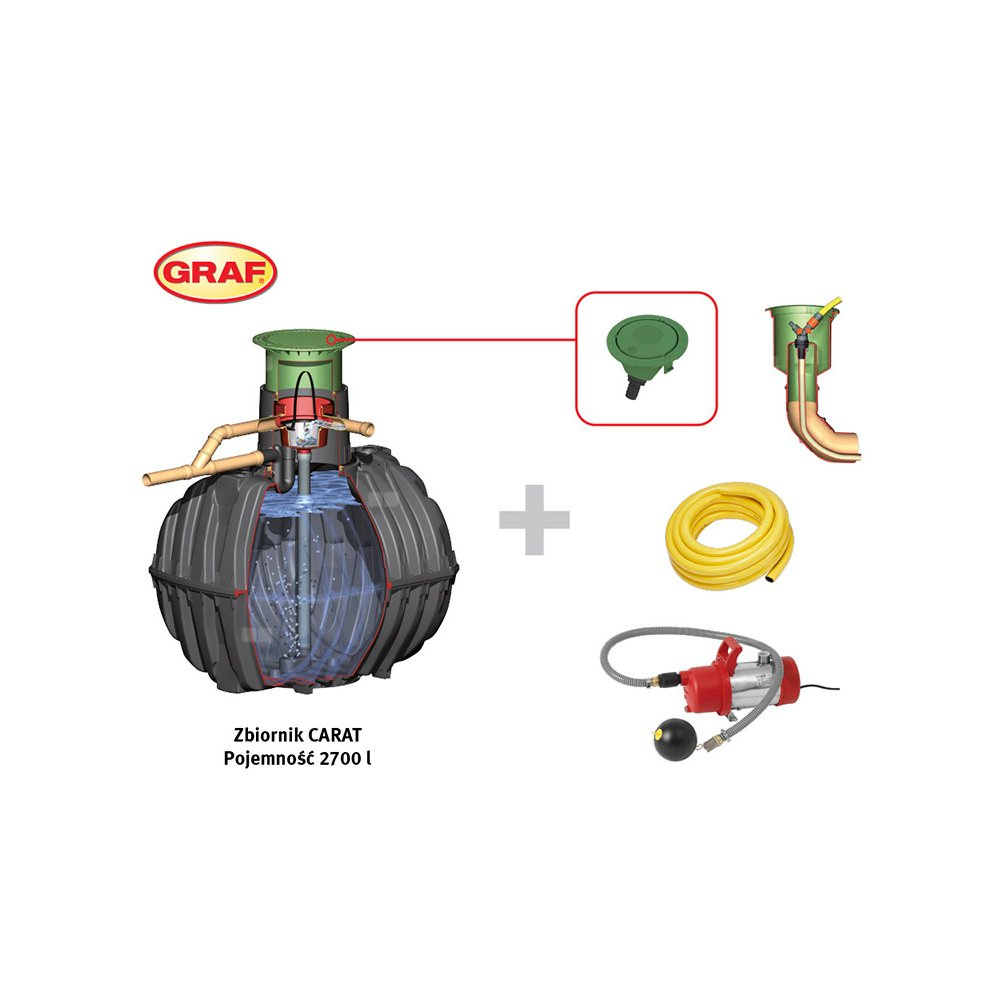 Ogród KOMFORT CARAT 2700L - podziemny zbiornik na deszczówkę, magazyn wody deszczowej, zestaw ogrodowy do magazynowania wody deszczowej, zestaw do podlewania ogrodu , Zbiornik na wodę deszczową , pompa zatapialna , filtr wewnętrzny