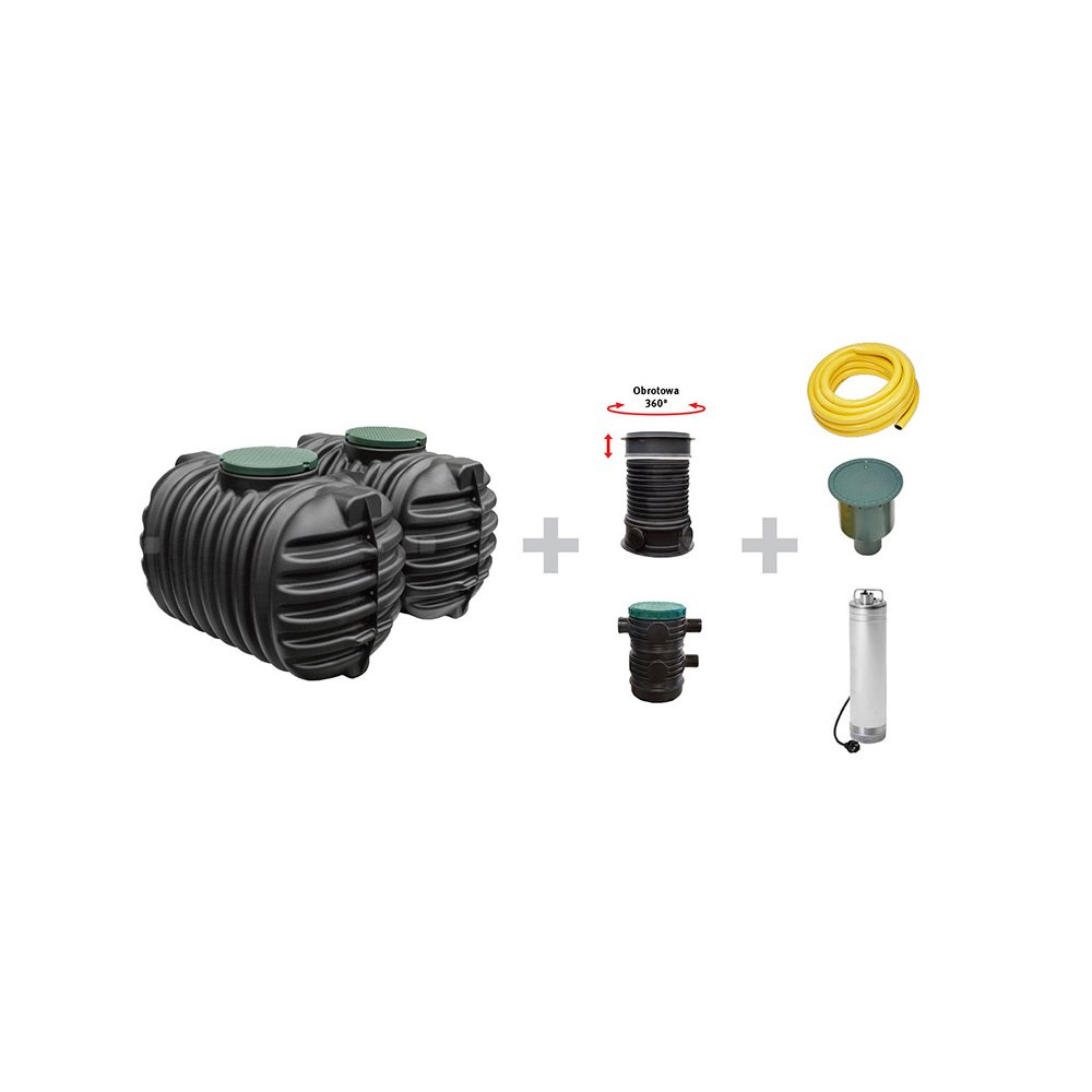 Ogród KOMFORT CRISTALL 5.600L - podziemny zbiornik na deszczówkę, magazyn wody deszczowej, zestaw ogrodowy do magazynowania wody deszczowej, zestaw do podlewania ogrodu , Zbiornik na wodę deszczową , pompa zatapialna , filtr wewnętrzny