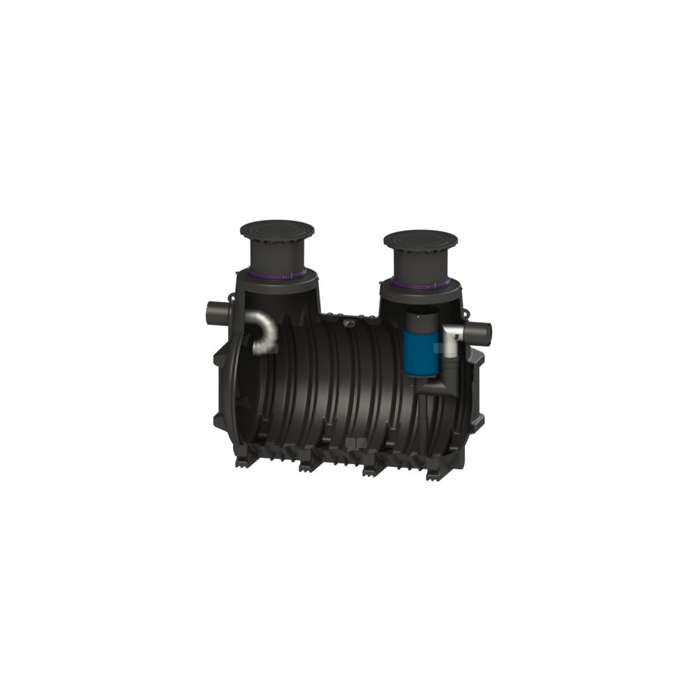 Separator cieczy lekkich nadaje się do zabudowy w ziemi i jest wyposażony w wyjmowany wkład koalescencyjny. Zbiornik wykonany z trwałego tworzywa sztucznego (PE) zawiera zintegrowany osadnik i samoczynne urządzenie zamykające. Dwie wodoszczelne pokrywy chroniące przed wodą napowierzchniową umożliwiają łatwy dostęp w celu wyczyszczenia lub konserwacji. Dla klasy obciążenia D należy w miejscu instalacji zamontować płytę odciążającą. Schematy zbrojenia są dostępne w firmie KESSEL. Możliwe jest przyłączenie na miejscu budowy na dopływie i odpływie rur PE-HD wg DIN 19537, rur PVC-KG wg DIN 19534, PP lub AS do fabrycznie wykonanych króćców rurowych ze stali nierdzewnej. Przy doborze odpowiednich uszczelnień i materiałów rurowych należy przestrzegać obowiązujących norm. Gwarancja na tworzywo PE wynosi 20 lat.