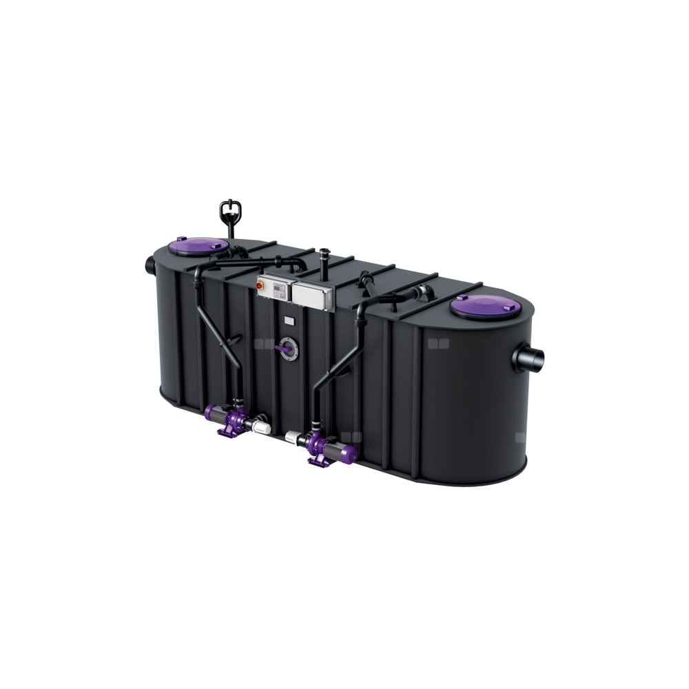 Innowacyjny system „Schredder-Mix“ ze zintegrowanym rozdrabniaczem dokonuje homogenizacji i przetłoczenia zawartości zbiornika. Czyszczenie następuje przy tym poprzez znajdującą się na zewnątrz pompę, którą można oddzielić od zbiornika urządzenia przy pomocy zasuwy odcinającej. W celu zneutralizowania nieprzyjemnych zapachów podczas ręcznego usuwania zawartości separatora przewidziany został króciec do bezpośredniego odprowadzania ścieków.