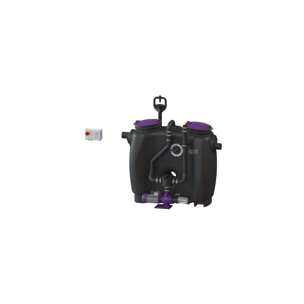 Separator do ścieków zawierających tłuszcze jest przystosowany do swobodnego ustawienia w pomieszczeniach nieprzemarzających, a jego zbiornik nie zawiera metalowych elementów. Zbiornik wykonany z trwałego tworzywa sztucznego (PE) jest wyposażony w zintegrowany osadnik i ma specjalnie wyprofilowane dno, które umożliwia szybkie i całkowite usuwanie zawartości. Dwie szczelne zapachowo pokrywy z zamknięciami szybkomocującymi umożliwiają łatwy dostęp w celu wyczyszczenia lub konserwacji. Innowacyjny system „Schredder-Mix“ ze zintegrowanym rozdrabniaczem dokonuje homogenizacji i przetłoczenia zawartości zbiornika. Czyszczenie i usuwanie zawartości zbiornika bez obecności przykrych zapachów następuje przy tym poprzez znajdującą się na zewnątrz pompę z zaworem 2-drożnym i dźwignią przełączającą, którą można oddzielić od zbiornika urządzenia przy pomocy zasuwy odcinającej. Po usunięciu zawartości w zbiorniku pozostają maks. 3 litry objętości resztkowej osadów. Ręczne sterowanie następuje przy pomocy przyjaznego w użyciu urządzenia sterowniczego, które przy pomocy kontaktu bezpotencjałowego można włączyć w system zarządzania budynkiem (BMS). Gwarancja na tworzywo PE wynosi 20 lat.