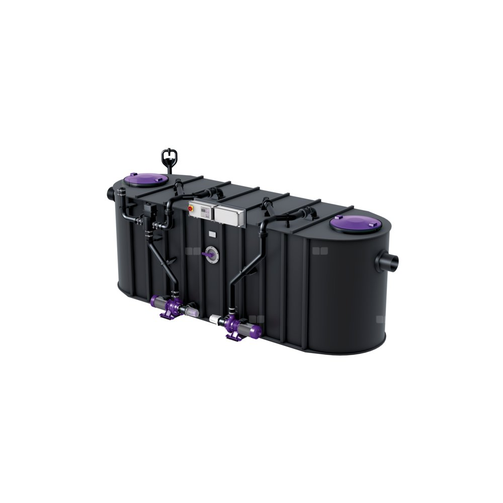 Separator do ścieków zawierających tłuszcze jest przystosowany do swobodnego ustawienia w pomieszczeniach nieprzemarzających, a jego zbiornik nie zawiera metalowych elementów. Zbiornik wykonany z trwałego tworzywa sztucznego (PE) jest wyposażony w zintegrowany osadnik i ma dno z ukośnymi elementami, które umożliwia szybkie i całkowite usuwanie zawartości. Dwie szczelne zapachowo pokrywy z zamknięciami szybkomocującymi umożliwiają łatwy dostęp w celu wyczyszczenia lub konserwacji.