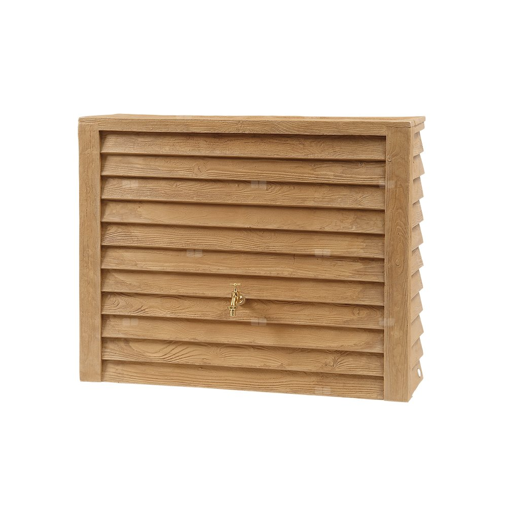 - Wytrzymały dekoracyjny zbiornik na deszczówkę o fakturze drewna