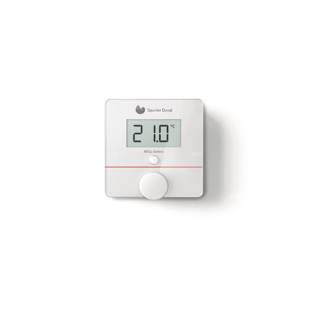 Radiowy regulator pokojowy do współpracy z modułem SR 940f. Regulator nie posiada własnej stacji bazowej ( jest nią moduł SR 940f). Współpracuje z aplikacja MiGo Link App na urzadzenia mobilne.