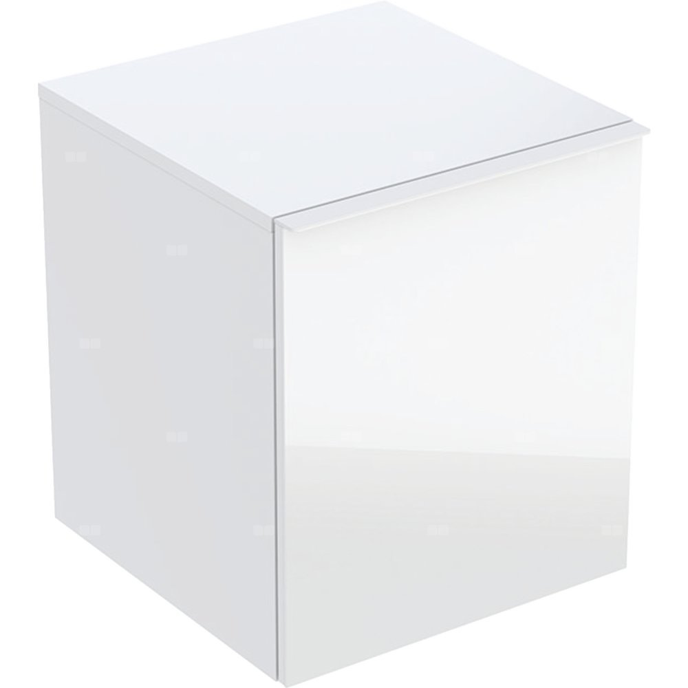 Szafka boczna Geberit Acanto, z jedną szufladą i jedną szufladą wewnętrzną: H=52cm, Korpus: biały / lakierowany na wysoki połysk, Front: biały / szkło błyszczące, Uchwyt: biały / powlekany proszkowo, matowy