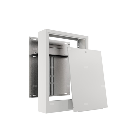 Szafki natynkowe dla rozdzielaczy o głębokości 135 mm i wysokości 700 mm ze zdejmowanymi plecami. Plecy szafki cynkowane wykonane z jednego elementu, kopus i drzwi malowane proszkowo. Zastosowana ochrona antykorozyjna: płukanie chemiczne (odtłuszczanie), powłoka cyrkonowa, malowanie proszkowe farbą epoksydowo-poliestrową w całości malowana proszkowo. Front wyposażony jest w zamek na monetę. Dostarczana z 2 szynami do montażu rozdzielacza oraz z kompletem śrub montażowych o różnych długościach.