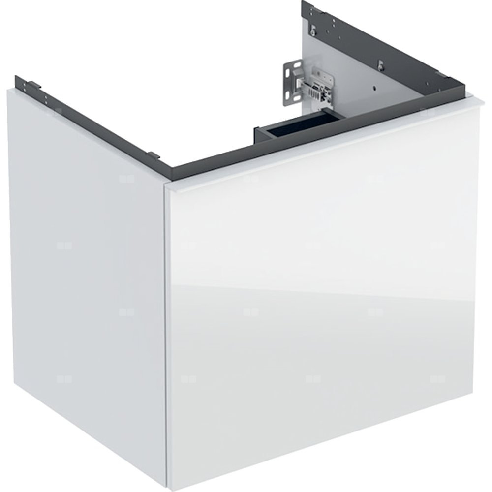 Szafka pod umywalkę Geberit Acanto, z szufladą i szufladą wewnętrzną: Szerokość umywalki=60cm, Korpus: biały / lakierowany na wysoki połysk, Front: biały / szkło błyszczące, Uchwyt: biały / powlekany proszkowo, matowy