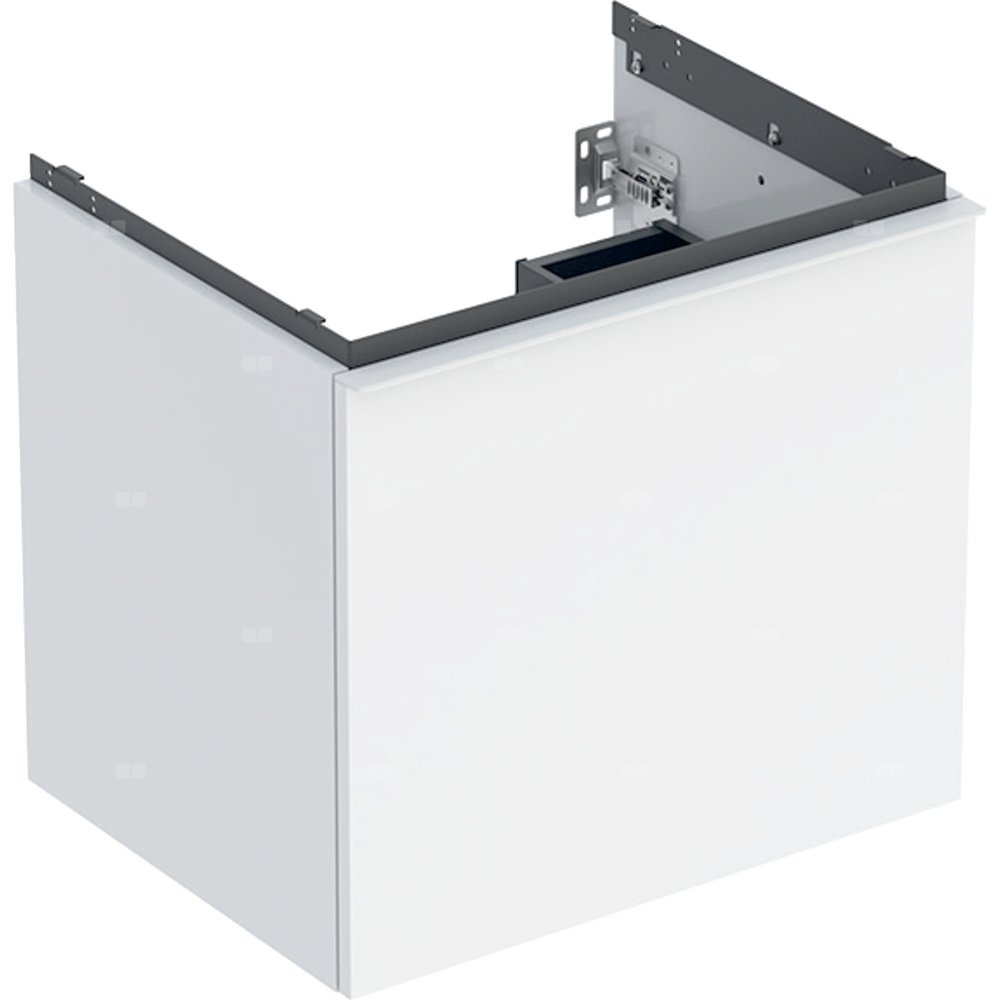 Szafka pod umywalkę Geberit Acanto, z szufladą i szufladą wewnętrzną: Szerokość umywalki=60cm, Korpus i front: biały / lakierowany na wysoki połysk, Uchwyt: biały / powlekany proszkowo, matowy