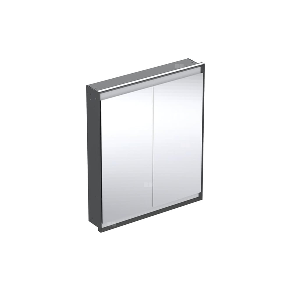 Szafka z lustrem Geberit ONE z ComfortLight i dwojgiem drzwi, montaż podtynkowy, wysokość 90 cm: B=75cm, Czarny mat / Aluminium malowane proszkowo