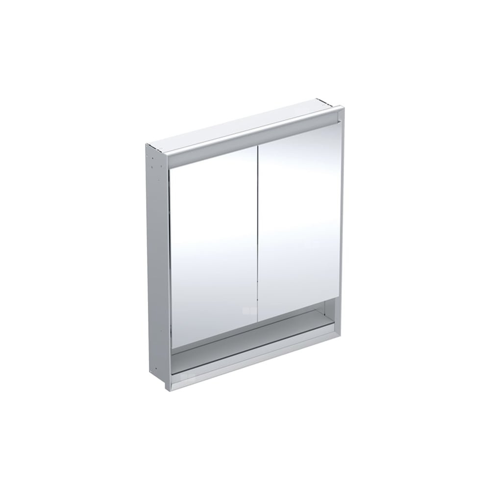 Szafka z lustrem Geberit ONE z wnęką i ComfortLight, z dwoma drzwiami, montaż podtynkowy, wysokość 90 cm: B=75cm, Aluminium anodyzowane