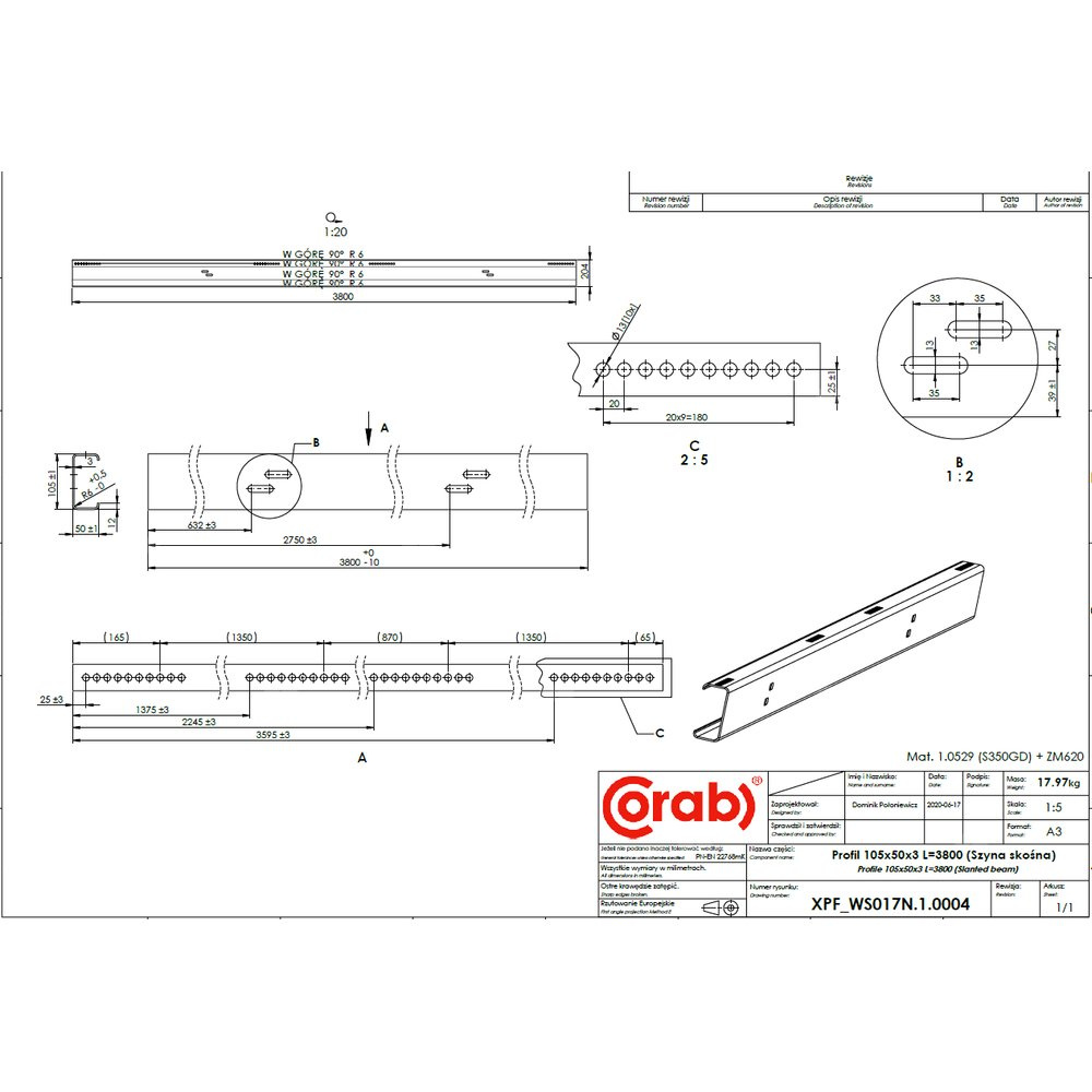 Szyna skośna wykonana z magnelisu ma zastosowanie w systemie WS-017