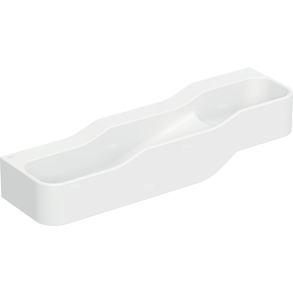 Umywalka GEBERIT Bambini 3-stanowiskowa prostokątna (rynna, bez elementów dekoracyjnych), biała, 1400mm, bez otworu na baterię, bez odpływu przelewowego, półka od ściany