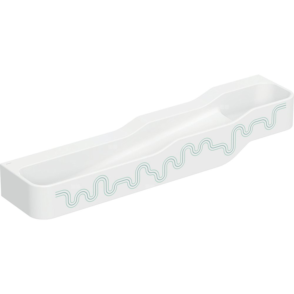 Umywalka GEBERIT Bambini 4-stanowiskowa prostokątna (rynna, elementy dekoracyjne), biała, 1800mm, bez otworu na baterię, bez odpływu przelewowego, półka od ściany