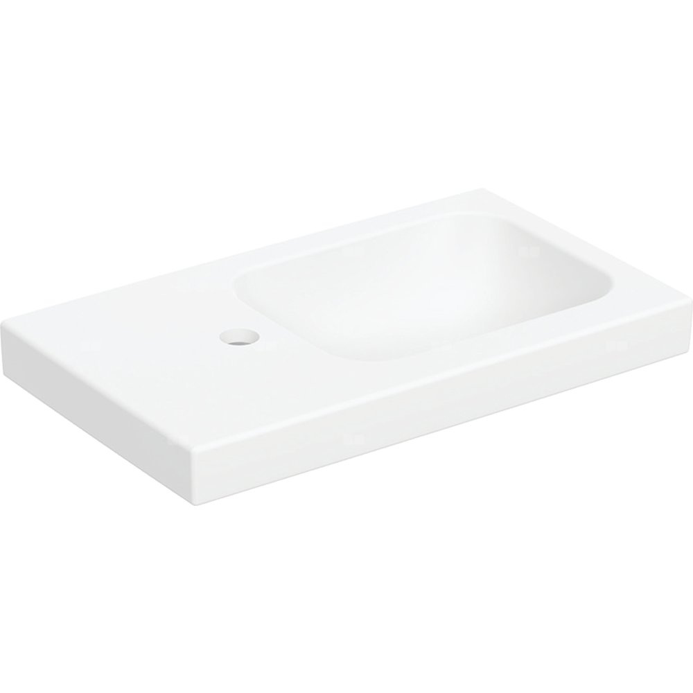 Umywalka GEBERIT iCon Light prostokątna, biała, 530mm, otwór na baterię z lewej, bez odpływu przelewowego, półka z lewej