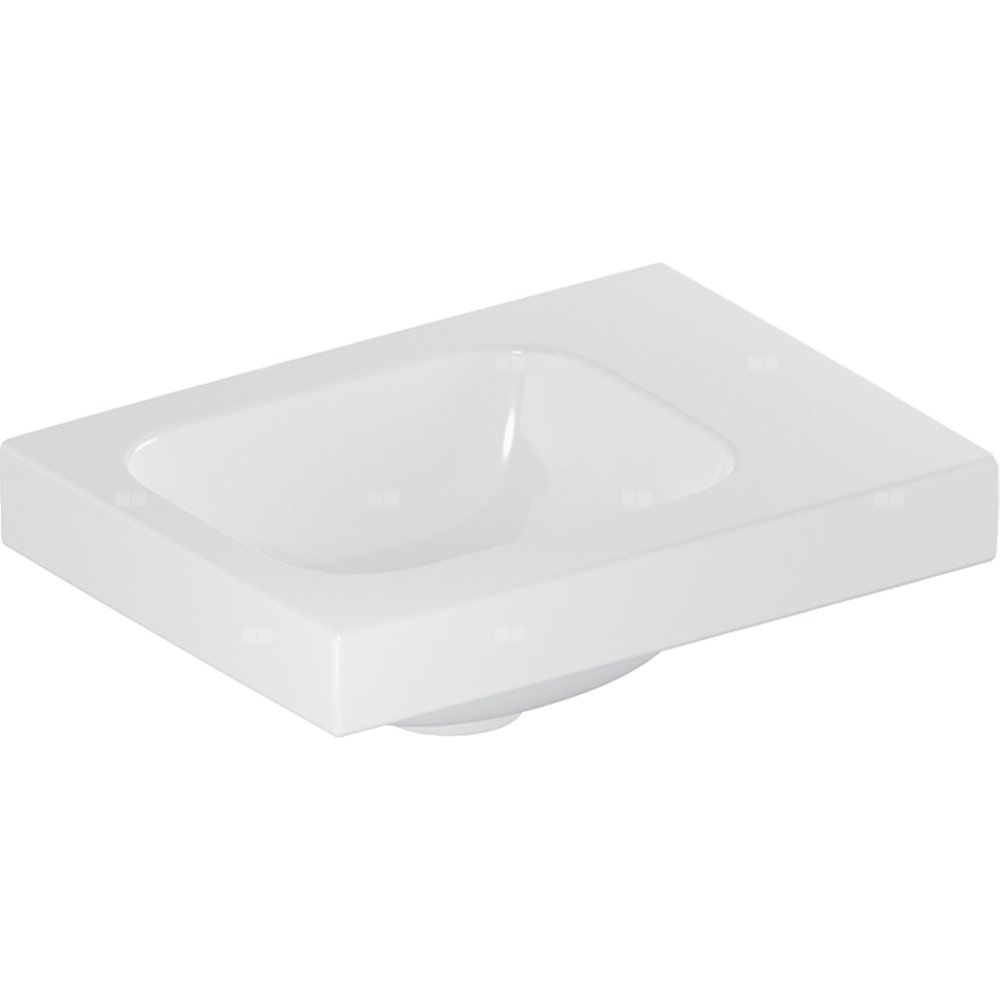 Umywalka GEBERIT iCon Light prostokątna, biała / KeraTect, 380mm, bez otworu na baterię, bez odpływu przelewowego, półka z prawej