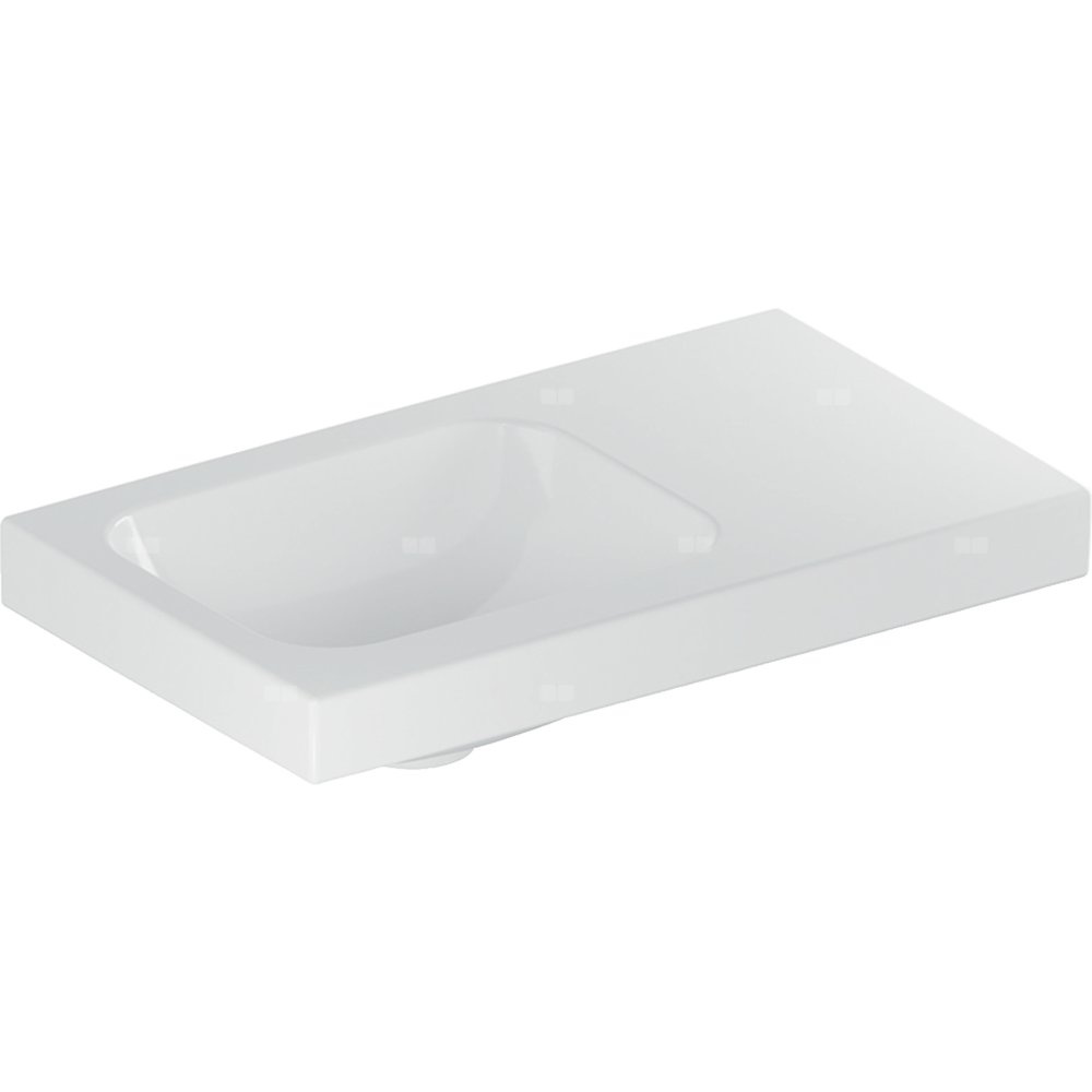 Umywalka GEBERIT iCon Light prostokątna, biała / KeraTect, 530mm, bez otworu na baterię, bez odpływu przelewowego, półka z prawej