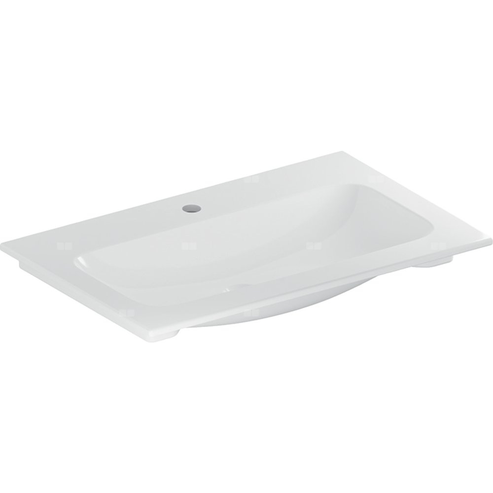 Umywalka GEBERIT iCon prostokątna, biała / KeraTect, 750mm, otwór na baterię na środku, nakładany od góry, bez odpływu przelewowego, półka od ściany