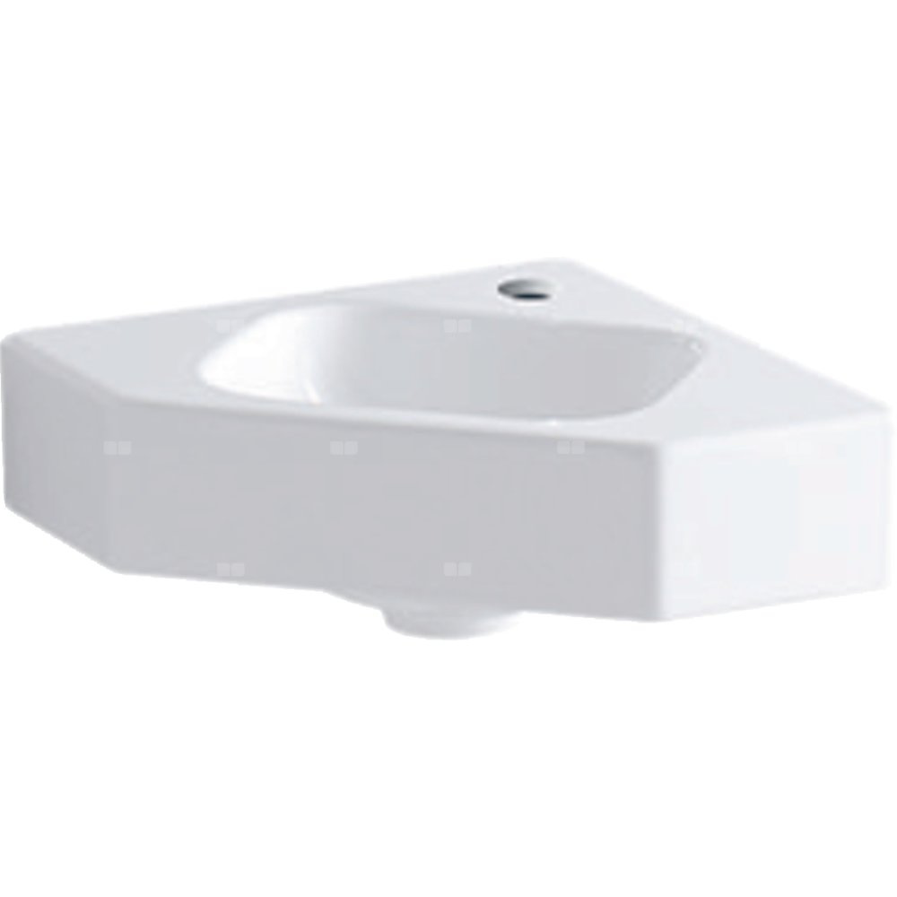 Umywalka GEBERIT iCon sześciokątna (narożna), biała / KeraTect, 460mm, otwór na baterię na środku, bez odpływu przelewowego, półki z obu stron