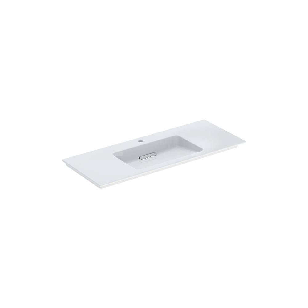 Umywalka GEBERIT ONE prostokątna, biała / KeraTect, 1200mm, otwór na baterię na środku, nakładany od góry, bez odpływu przelewowego, półki z obu stron