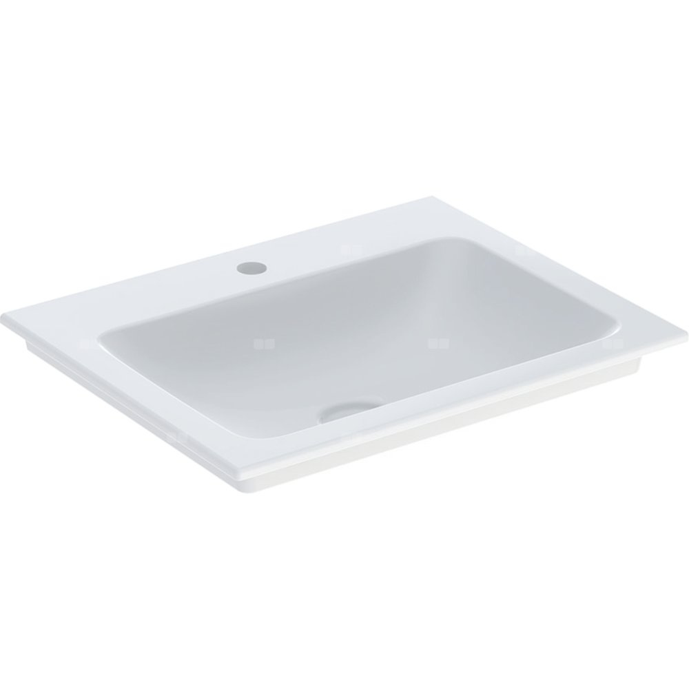Umywalka GEBERIT ONE prostokątna, biała / KeraTect, 600mm, otwór na baterię na środku, nakładany od góry, bez odpływu przelewowego, półka od ściany