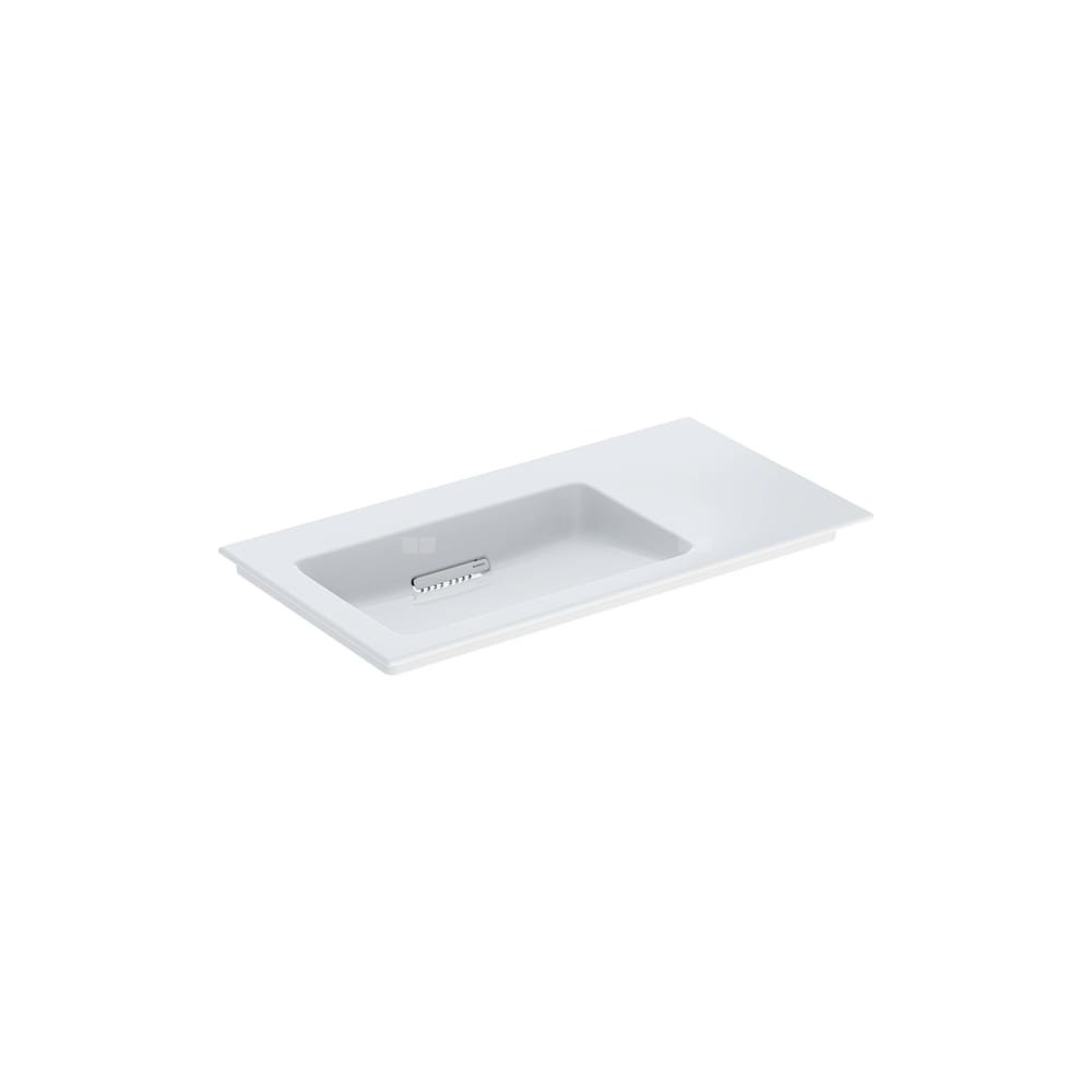 Umywalka GEBERIT ONE prostokątna, biała / KeraTect, 900mm, bez otworu na baterię, nakładany od góry, bez odpływu przelewowego, półka z prawej