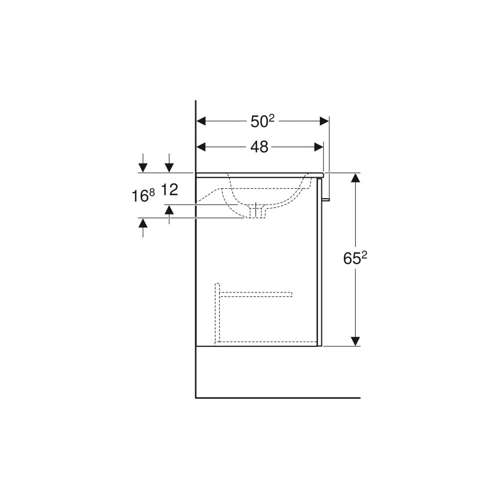 Umywalka GEBERIT Selnova Square prostokątna, biała, 1000mm, otwór na baterię na środku, nakładany od góry, z odpływem przelewowym, półka od ściany