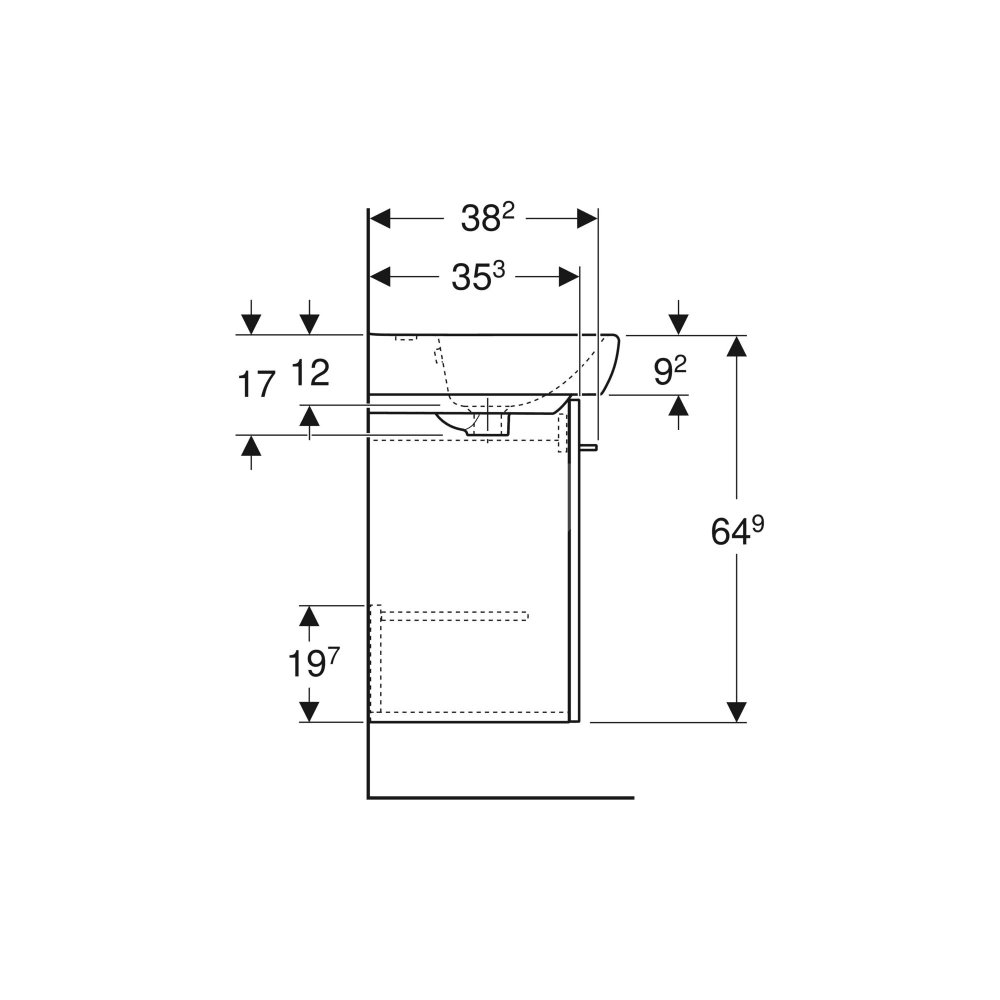 Umywalka GEBERIT Selnova Square prostokątna, biała, 500mm, otwór na baterię na środku, bez odpływu przelewowego, półka od ściany