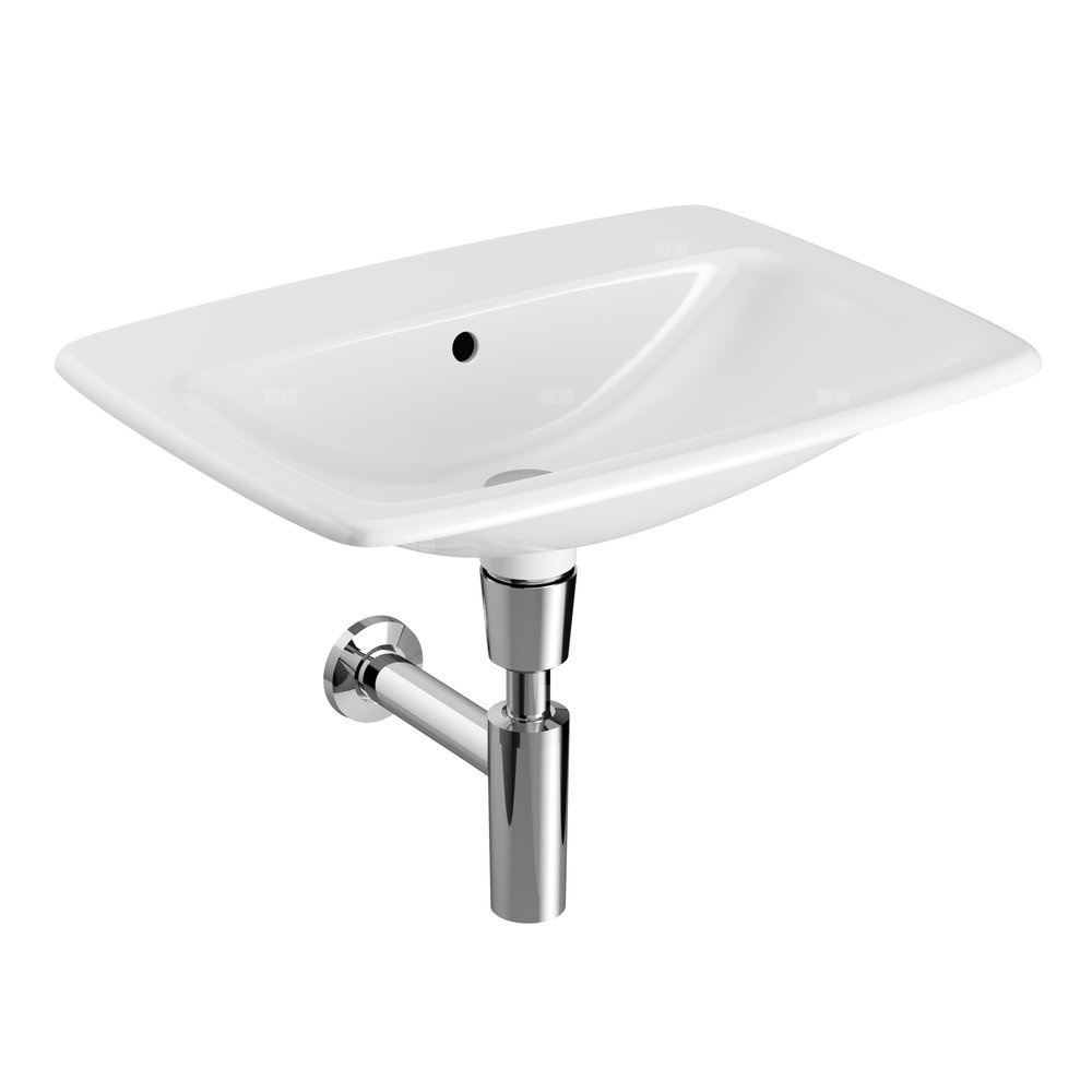 Umywalka GEBERIT Selnova Square prostokątna, biała, 600mm, bez otworu na baterię, wpuszczana w blat, z odpływem przelewowym, półka od ściany