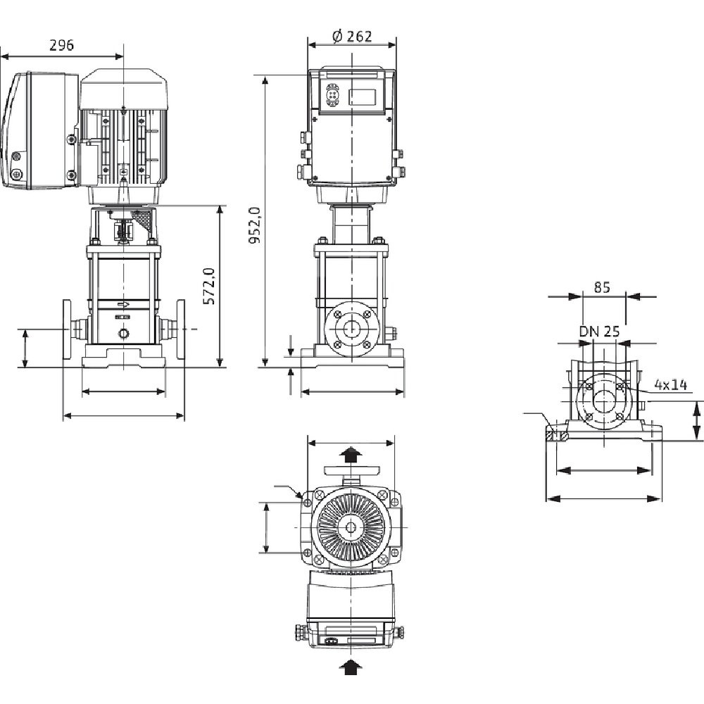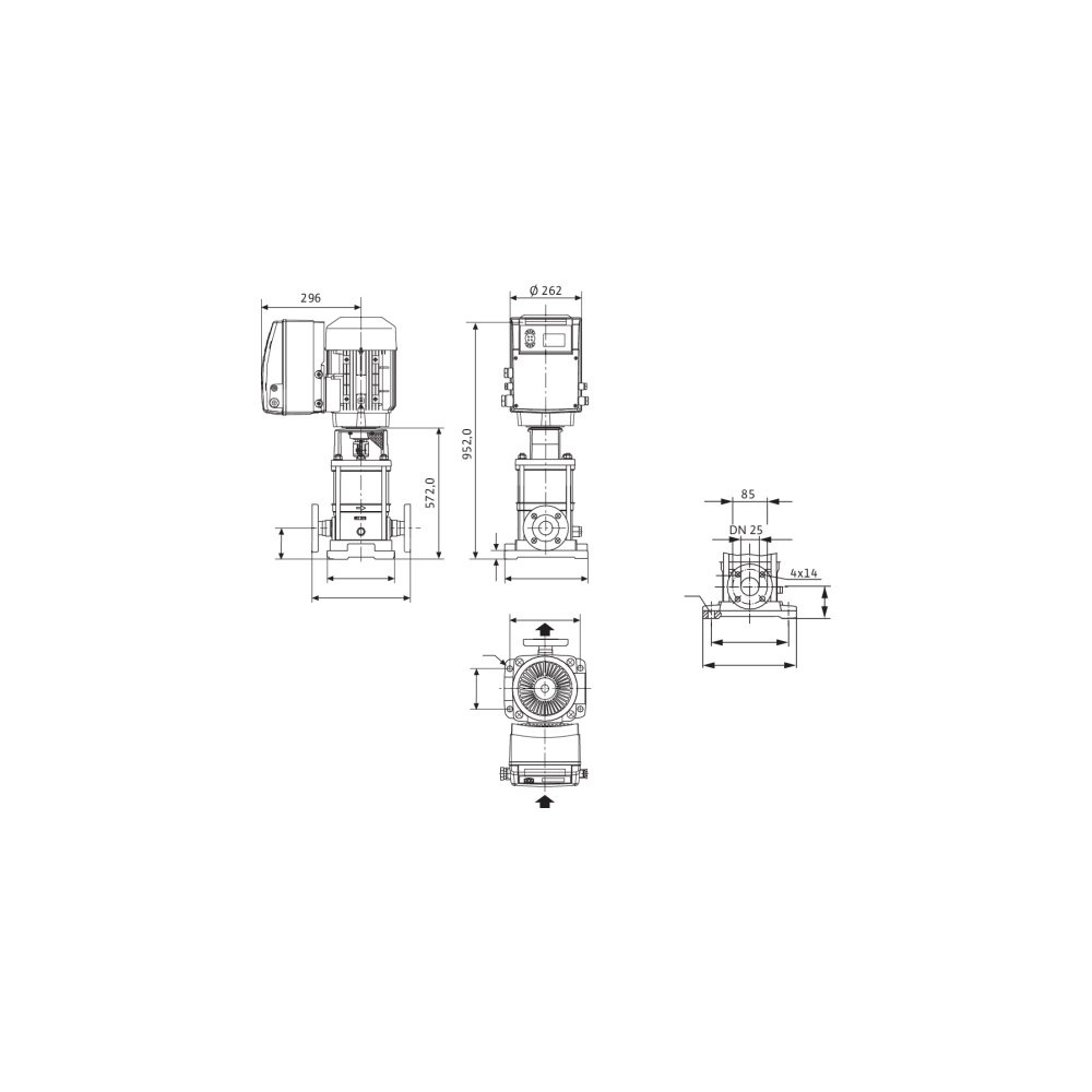 Normalnie zasysająca, wielostopniowa, pionowa, wysokociśnieniowa pompa wirowa o konstrukcji typu Inline z wbudowaną przetwornicą częstotliwości chłodzoną powietrzem. Wbudowana przetwornica częstotliwości umożliwia zmienną prędkość obrotową oraz regulację ciśnienia i PID.