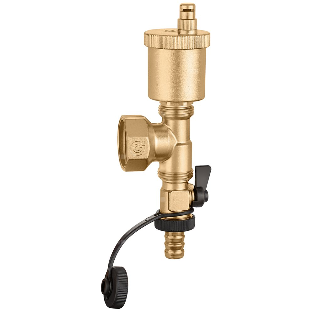 Zakończenie rozdzielacza 1"GW. Z zaworem kulowym, złączką do podłączenia węża i automatycznym odpowietrznikiem