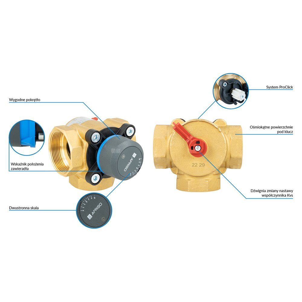 Wygodne pokrętło z ogranicznikami kąta obrotu.