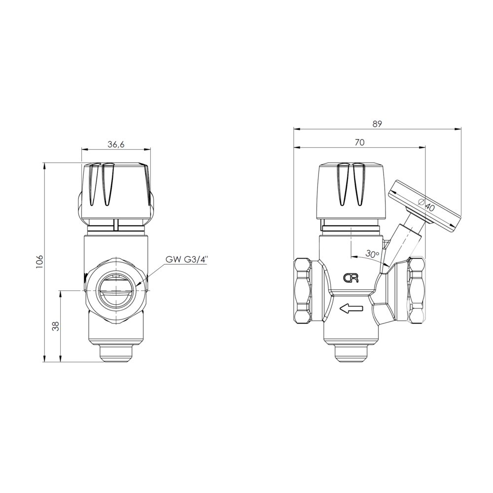 Umożliwia nastawę temperatury wody w pionie / gałęzi w przedziale 35÷75°C.