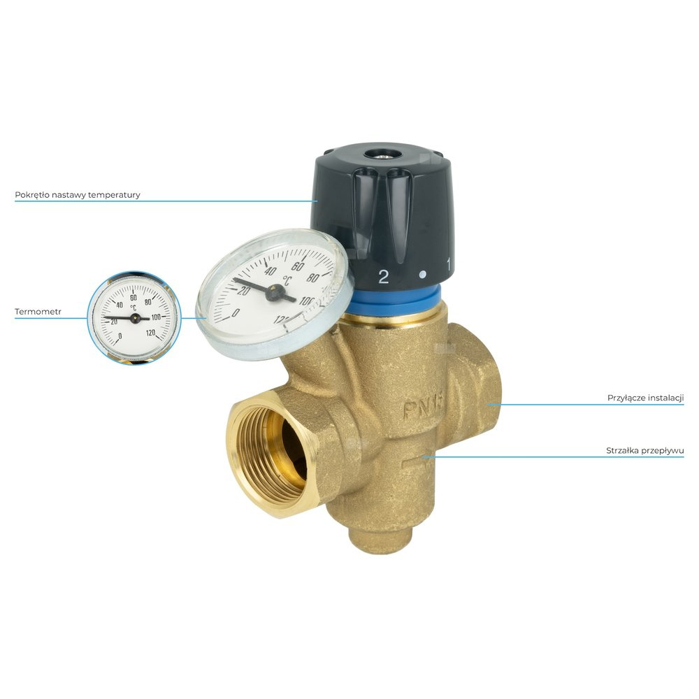 Termometr o zakresie pomiarowym 0÷120°C umożliwia kontrolę aktualnej temperatury wody.