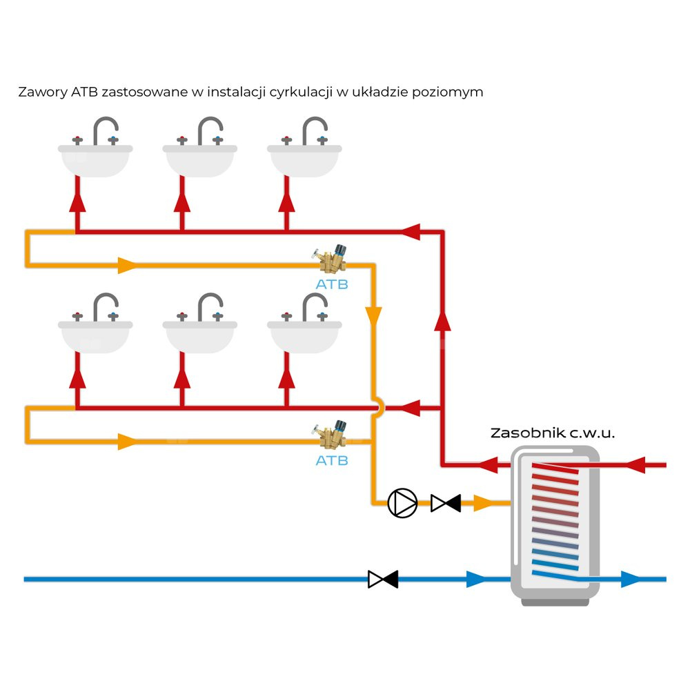 Stosowany w instalacjach cyrkulacji c.w.u.Montowany na powrocie z danego pionu / gałęzi cyrkulacji.