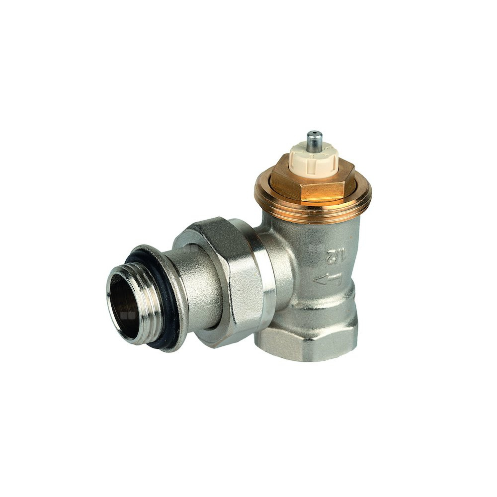 Zawór termostatyczny, kątowy, wkładka SX, 1/2", gwint wewnętrzny, ze złączką do grzejnika z uszczelnieniem miękkim